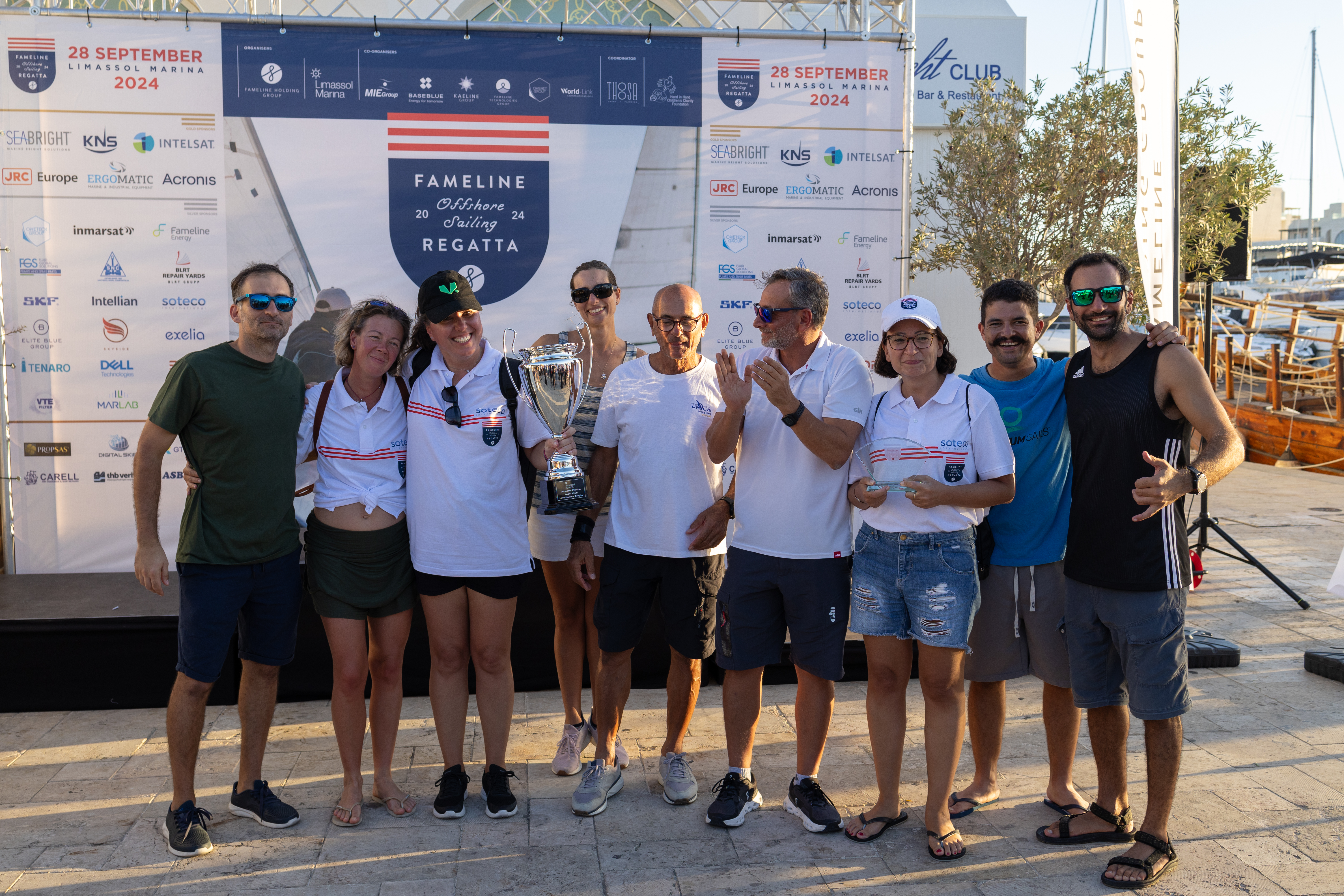 The success of the Fameline Offshore Sailing Regatta would not have been possible without the support and effort of the event’s co-organizers, sponsors, and supporters. A heartfelt thank you goes to Limassol Marina, the Co-Organizers: MIE Group, Baseblue, Kaeline Group, Fameline Technologies Group, One Net Group and World Link Communications, the Gold Sponsors: KNS, Intelsat, JRC, Acronis, Seabright SA, Ergomatic SA, the Silver Sponsors: Inmarsat, DELL, Intellian, Exelia, VTE Filter, SKF Marine, Soteco International, Fluid Global Solutions, Tenaro GmbH, STOP AEBE, BLRT Repair Yards, Skyside, Elite Blue Group, Santierul Naval Constanta, and the Bronze Sponsors: ASBIS, Digital Skies, Adriatic Propelleri, MarLab, GT Maritime, Carell SA and Thb Verhoef.